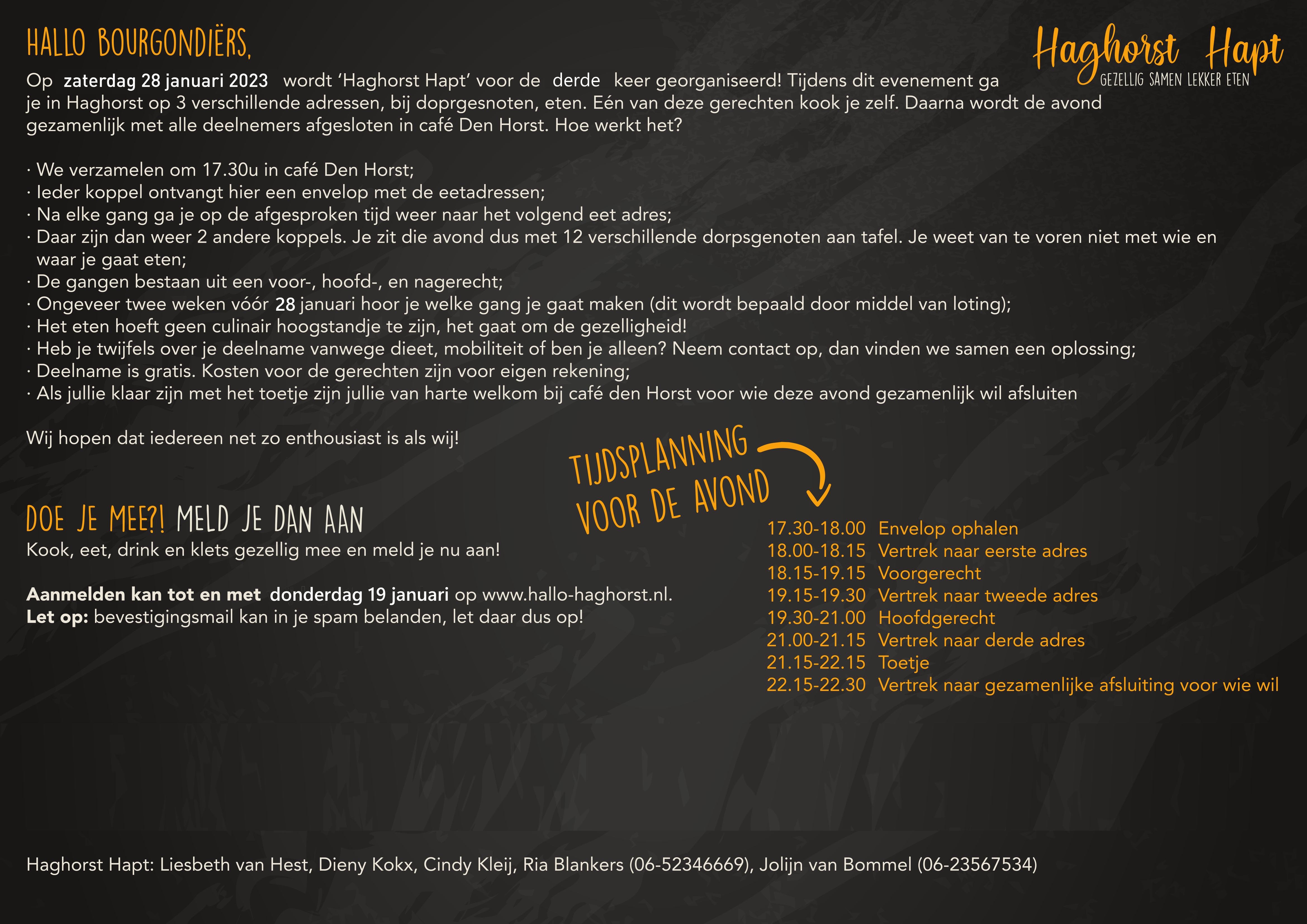 We vinden het superleuk dat we de 3de editie van Haghorst Hapt kunnen bekendmaken.