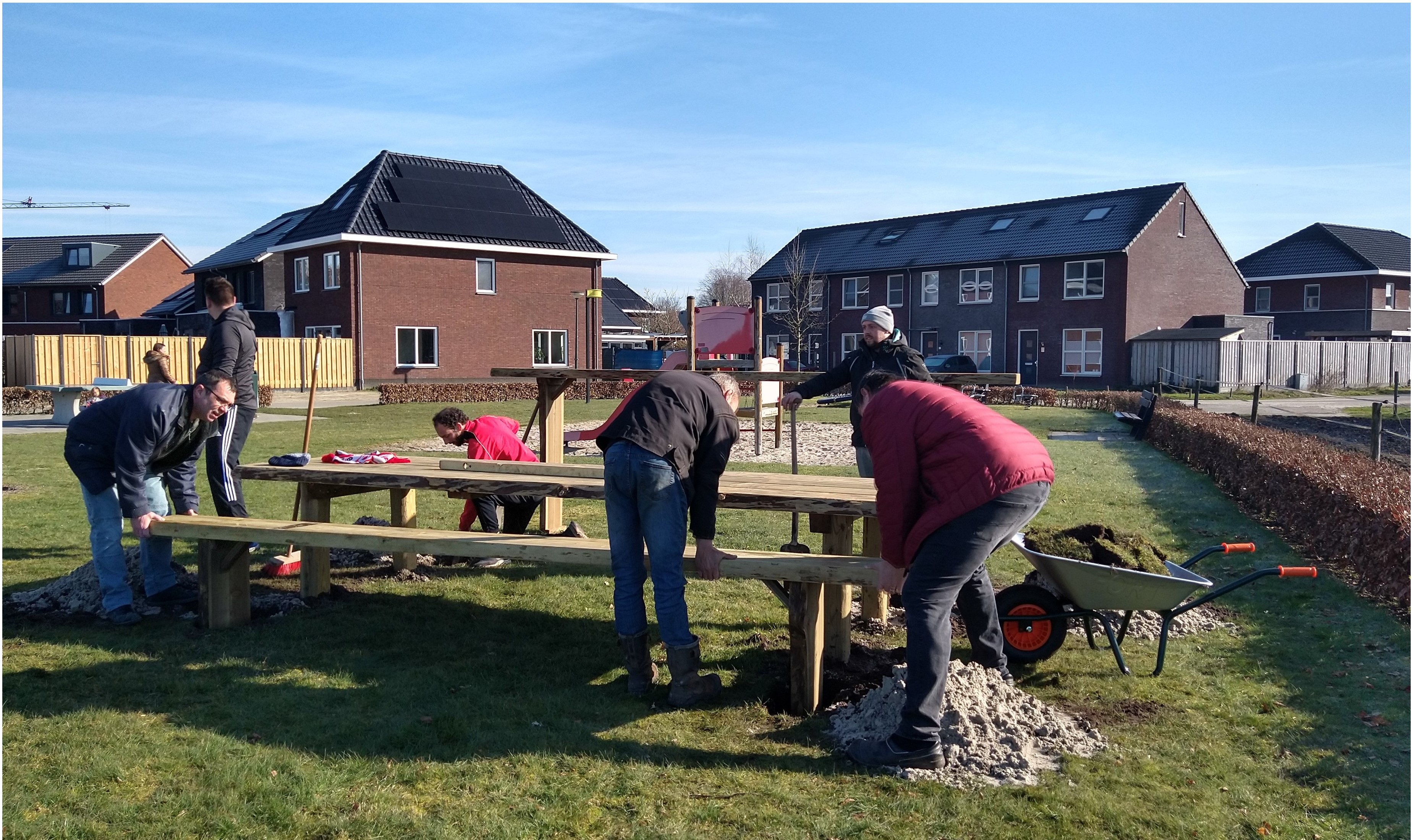 Vandaag, 6 maart, is samen met een aantal buurtbewoners een grote tafel met banken geplaatst in de speeltuin van de Welder.